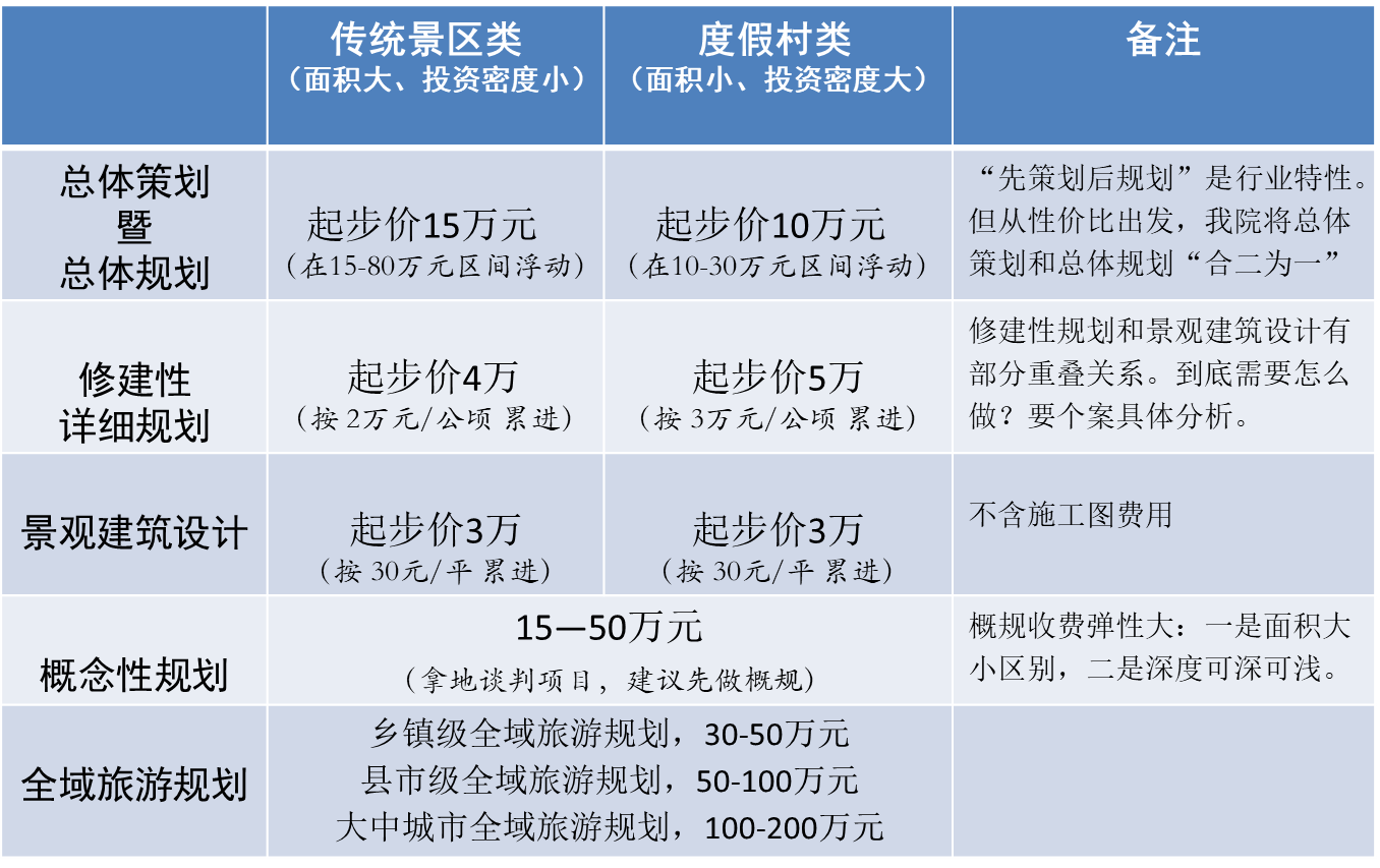 首先必須說(shuō)明,旅游規(guī)劃收費(fèi)并無(wú)所謂的“標(biāo)準(zhǔn)價(jià)格”,但很多客戶(hù)還是表示希望“知根知底”,所以至道規(guī)劃院就結(jié)合多年經(jīng)驗(yàn)及行業(yè)...