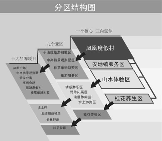十大品牌項(xiàng)目:打造鳳凰廣場、中高檔景觀別墅、“銀發(fā)”公寓、高檔會所、旅游度假村、桂花旅游別墅、桂花長廊、水上F1、竹林野趣、勵志鍛煉城堡十個品牌項(xiàng)目,用項(xiàng)目吸引游客。