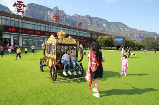 云臺山景區(qū)對百家?guī)r綜合服務中心進行了改造提升,不僅在山門廣場鋪設了9000平方米的人工草坪,還增加了風車擺件、噴泉、卡通造型等,儼然變成了一個歡樂的夢幻樂園。