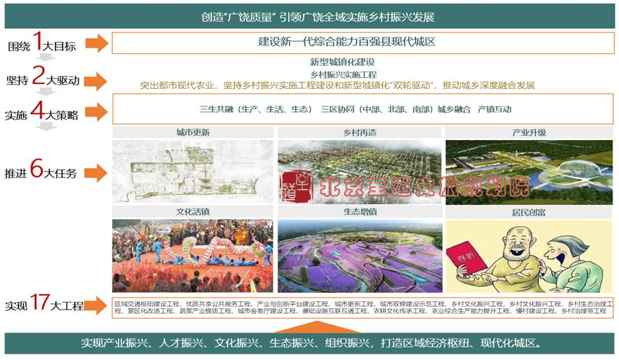 圍繞建設(shè)新一代綜合能力百?gòu)?qiáng)縣現(xiàn)代城區(qū)的總目標(biāo),堅(jiān)持新型城鎮(zhèn)化建設(shè)和鄉(xiāng)村振興“雙輪驅(qū)動(dòng)”,實(shí)施三生共融(生產(chǎn)、生活、生態(tài))、三區(qū)協(xié)同(中部、南部、北部)、城鄉(xiāng)融合、產(chǎn)鎮(zhèn)互動(dòng)“四大策略”,推進(jìn)城市更新、鄉(xiāng)村再造、產(chǎn)業(yè)升級(jí)、文化活鎮(zhèn)、生態(tài)增值、居民創(chuàng)富“六大重點(diǎn)任務(wù)”,實(shí)施區(qū)域交通樞紐建設(shè)、城市有機(jī)更新、鄉(xiāng)村文化振興等“十七項(xiàng)重點(diǎn)工程”,實(shí)現(xiàn)產(chǎn)業(yè)振興、人才振興、文化振興、生態(tài)振興、組織振興,打造區(qū)域經(jīng)濟(jì)樞紐、現(xiàn)代化城區(qū)、城鄉(xiāng)融合發(fā)展新典范。