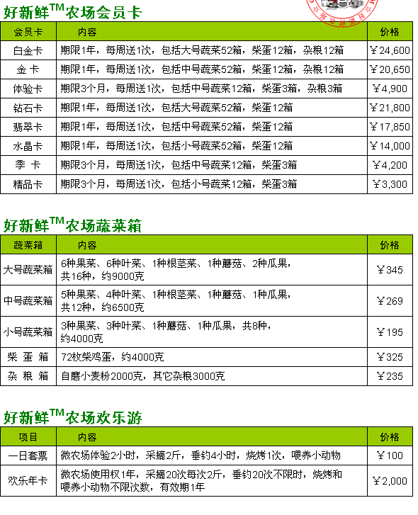 典型案例:天津好新鮮會(huì)員制私人農(nóng)場(chǎng)http://www.haoxinxian.com.cn/index.asp 從下表可以看出,除了配送業(yè)態(tài)外,還有“農(nóng)場(chǎng)歡樂游”這樣的休閑業(yè)態(tài)。