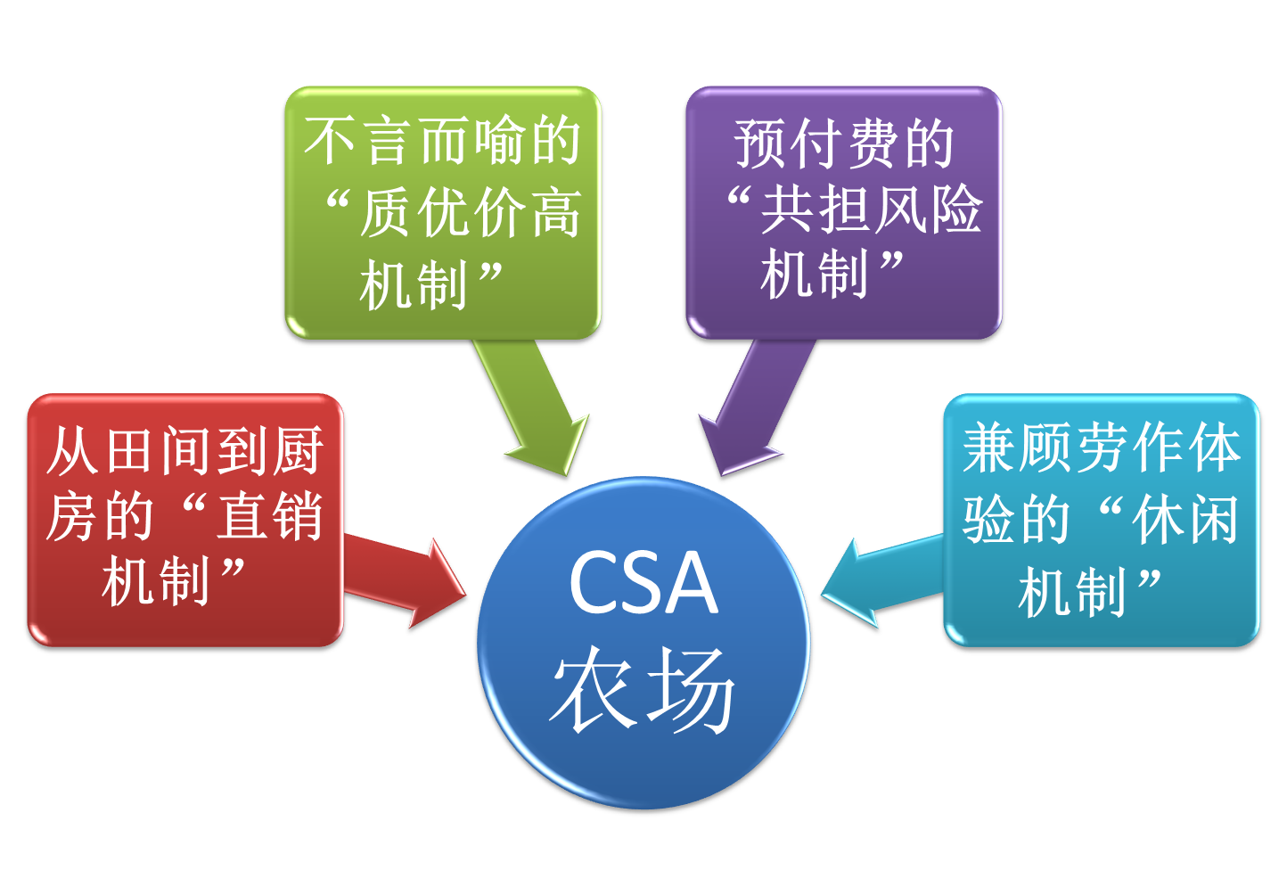 一、概念簡(jiǎn)介:放著農(nóng)貿(mào)市場(chǎng)便宜的產(chǎn)品不買,偏要到農(nóng)莊預(yù)付款后取貨,農(nóng)莊會(huì)在約定的時(shí)間提供新鮮蔬菜水果肉禽。這就是目前正在國(guó)際流行的CSA(Community Supported Agriculture)。翻譯為“社區(qū)支持農(nóng)業(yè)”或“社區(qū)農(nóng)場(chǎng)”。