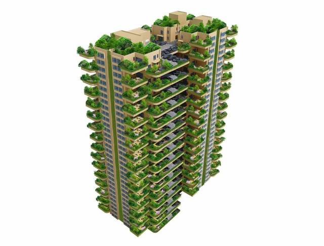 建筑外墻不但全部長(zhǎng)滿(mǎn)植物,而且每家都有一座兩層樓高的空中室外私人小院及一塊幾十平米土地,覆土0.5一1米,可種樹(shù)、種花、種菜、遛狗、養(yǎng)鳥(niǎo)……使住在繁華城市中心的人們,不用到鄉(xiāng)下買(mǎi)地,都能實(shí)現(xiàn)“家園”和“回歸大自然”的夢(mèng)想。