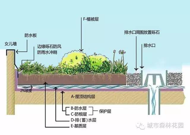 花草樹(shù)木的栽種:在設(shè)計(jì)方案中,所有院子的混凝板都是下沉板上翻梁,就像衛(wèi)生間的結(jié)構(gòu)一樣。下沉板有60厘米左右深度,也就是說(shuō)可以回填土60厘米厚,在靠墻栽種大樹(shù)的地方還可做一個(gè)向上50厘米的樹(shù)池,這樣,在靠墻的地方便有1米多深的覆土,即可以栽種4-5米高的樹(shù),并將樹(shù)干固定在墻上,以防大風(fēng)將樹(shù)刮倒或使其搖晃,在其它不靠墻的地方才栽種1-2米的低矮植物、果樹(shù)或灌木!這樣,整個(gè)庭院的花草樹(shù)木便顯得錯(cuò)落有致,任何大風(fēng)也沒(méi)問(wèn)題。
