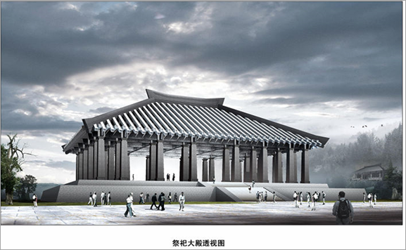 總體規(guī)劃設計以“一條景觀軸線、四大主題廣場、三個大殿、老子墓遺址”為核心理念,布局上形成“依山為陵、兩水聚氣、建筑恢弘”的建筑景觀。建筑設計上,堅持老子“道法自然”的哲學思想,總體風格采用老子所處戰(zhàn)國時代風格,并強調其原真性、現(xiàn)實性