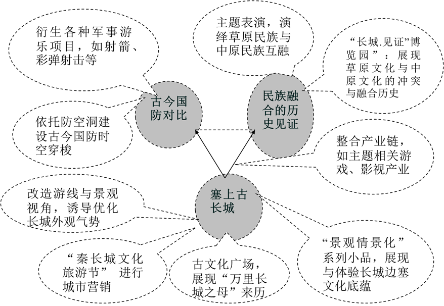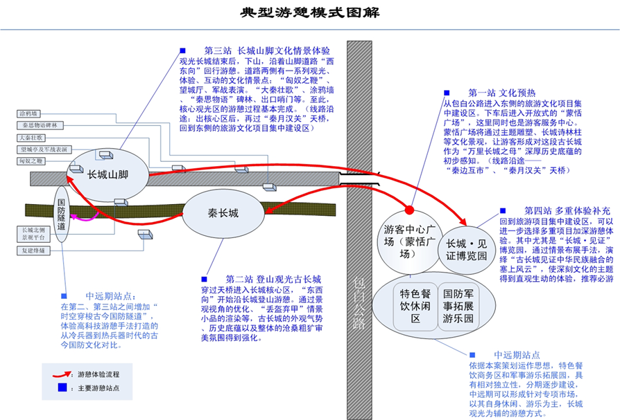 4、最后,綜合上述策劃、規(guī)劃、設(shè)計(jì)成果,形成了秦長(zhǎng)城旅游區(qū)自身獨(dú)特的游憩方式