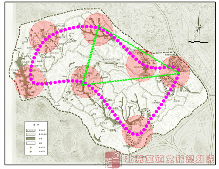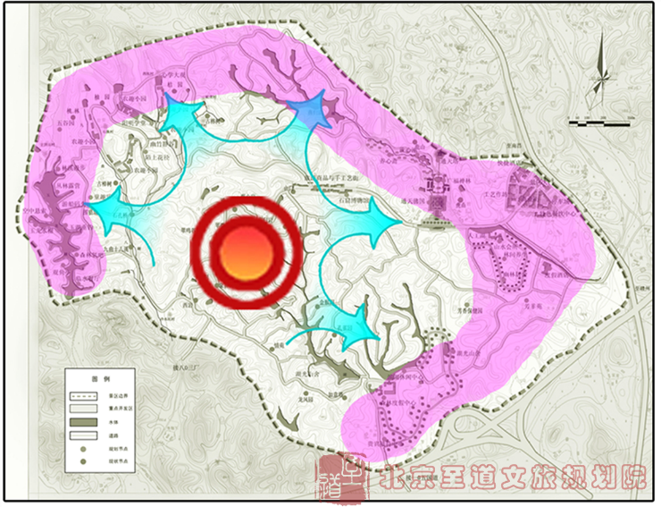 1、景區(qū)生長結(jié)構(gòu):依托核心,多向發(fā)散,外圍為重,中心提升