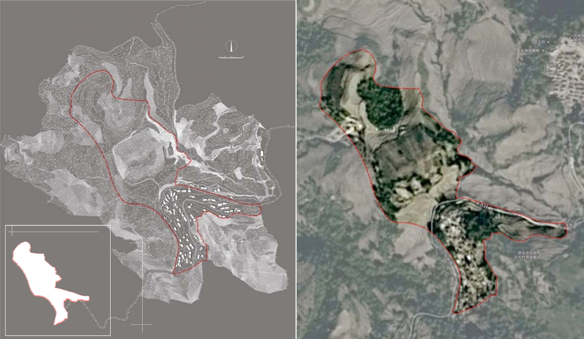項(xiàng)目位置:位于度假村西側(cè)和西北側(cè)沿線,項(xiàng)目地為現(xiàn)狀梯田,地形依山起伏,地勢較好,高程大多為1280米,坡度變化較大,坡向大部分為西向,需要有所選擇地進(jìn)行布局和建設(shè)。