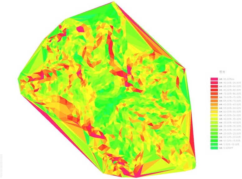 翁丁佤文化度假區(qū)適宜選擇坡地,對于朝向沒有硬性要求,建筑密度小,對采光要求不大,因此坡向?qū)τ诙燃賲^(qū)建設(shè)影響較小。場地坡向條件較適合度假區(qū)的建設(shè)要求, 場地中60%面西和西南,日照條件良好,較適合度假區(qū)建設(shè)需求,場地建筑也將以西向?yàn)橹鳌?/span>