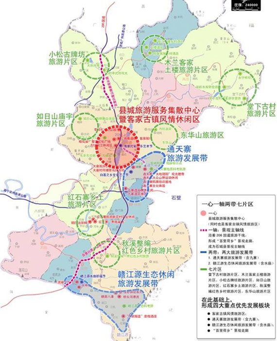 兩帶:兩大旅游發(fā)展帶。(通天寨旅游發(fā)展帶(含九寨);贛江源生態(tài)休閑旅游發(fā)展帶(含水廟)。