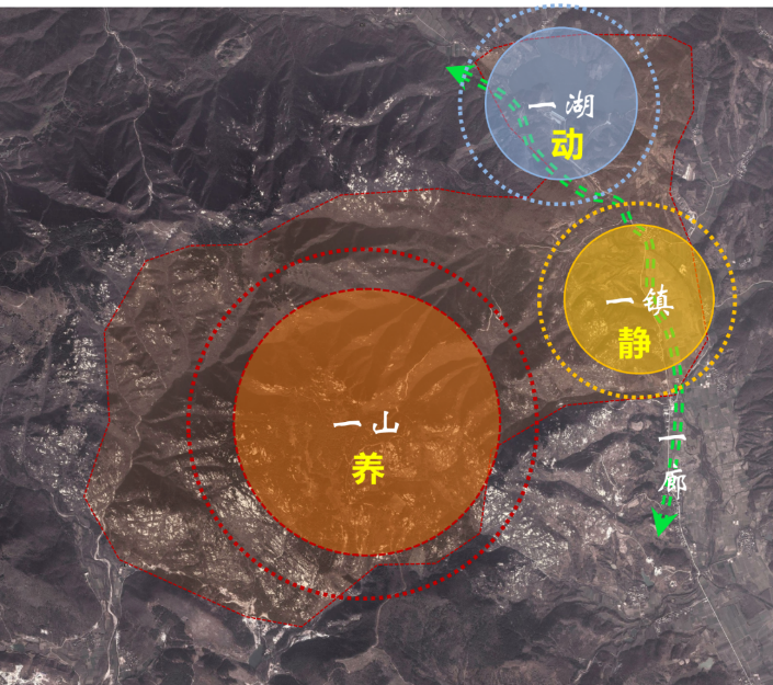 一山:天目山; 一湖:運(yùn)動(dòng)湖; 一鎮(zhèn):休閑鎮(zhèn); 一廊:景觀廊