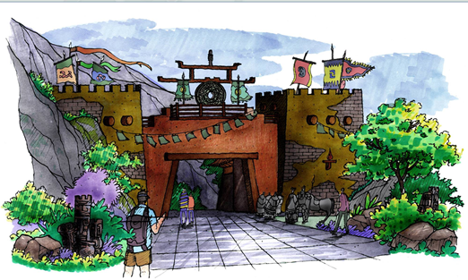 我們把“老馬識途”故事分解成十個情節(jié),進一步演繹成規(guī)劃設(shè)計上的十個游憩節(jié)點。每個節(jié)點的設(shè)置,首先通過微縮景觀將故事情節(jié)形象化、歷史氛圍場景化;在此基礎(chǔ)上融合了現(xiàn)代游樂手法,讓游客的游樂過程角色化。