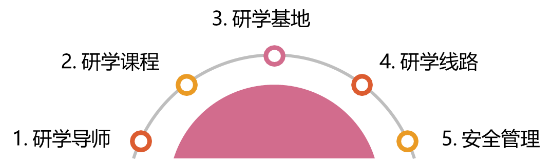 研學(xué)旅游產(chǎn)業(yè)鏈中包括五大環(huán)節(jié):研學(xué)導(dǎo)師、研學(xué)課程、研學(xué)基地、研學(xué)線路、安全管理。
