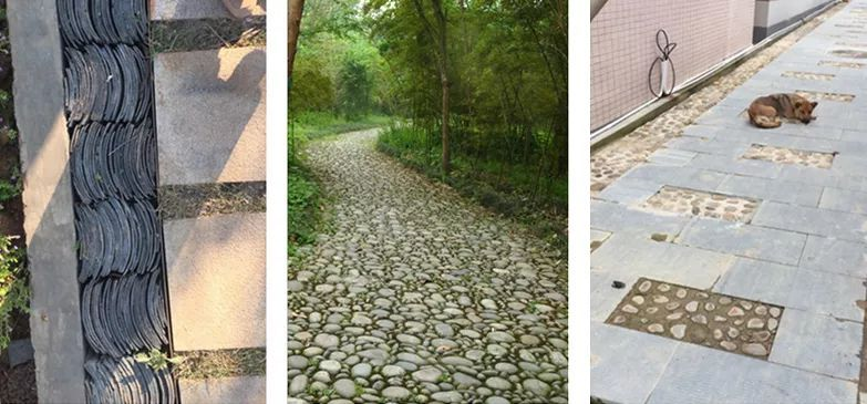 不規(guī)則石材鋪裝形成的小徑很有童趣