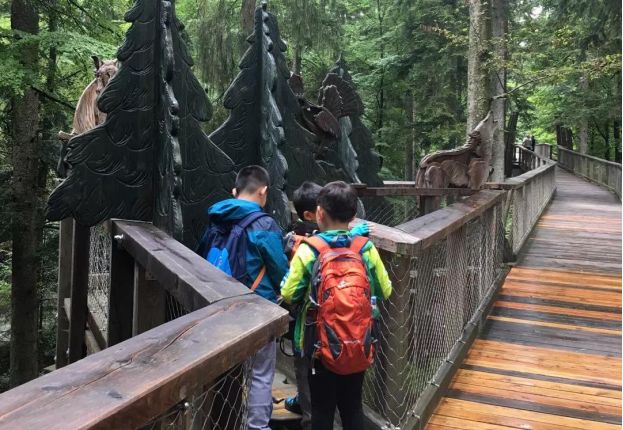 上午與德國(guó)孩子一起徒步森林或游戲;下午參觀歐洲最高樹(shù)屋